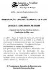 ATENÇÃO - Aviso de Interrupção do Abastecimento de Água