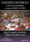 No próximo sábado, dia 12 de abril, pelas 21.30h, na Igreja Paroquial do Bunheiro, terá lugar um Concerto de Páscoa, com o Lusitanae Ensemble e a soprano Isabel Alcobia, que executarão obras de Mozart, Bach, Pergolesi e Handel. A entrada é livre.